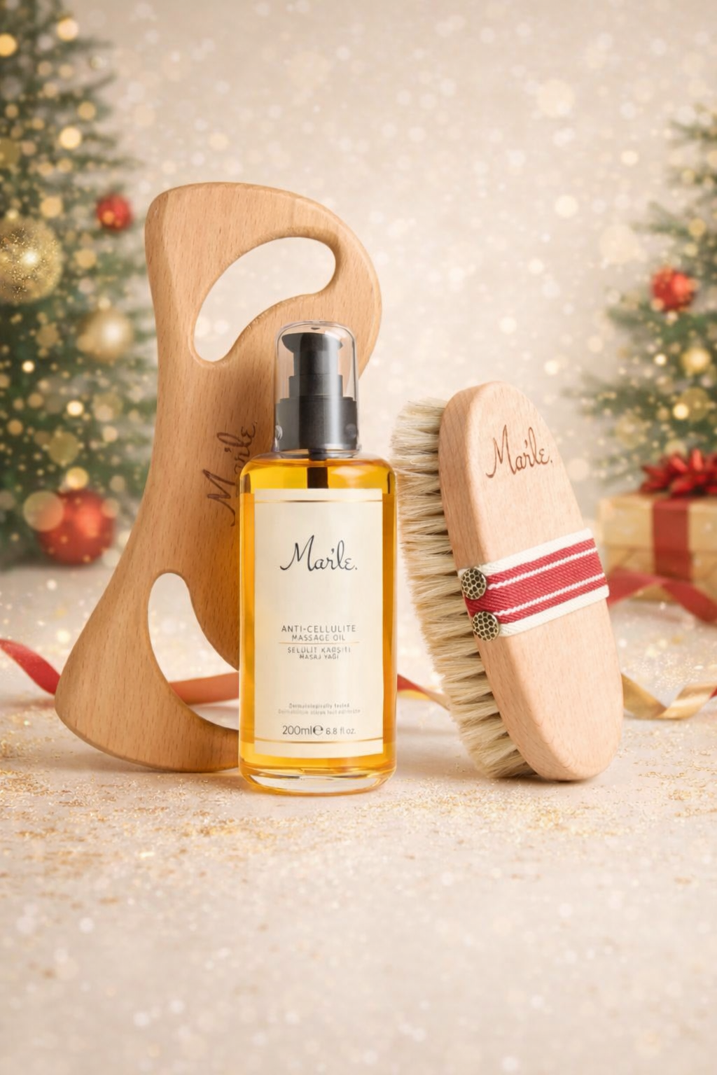 Mar’le Doğal At Kılı Fırçası + Selülit Karşıtı Masaj Yağı 200 ML + Ahşap Masaj Aleti 3’lü Selülit Bakım Seti