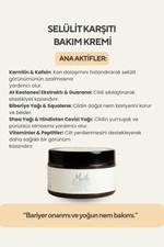 Mar’le Selülit Karşıtı Bakım Kremi, selülit görünümünü azaltmaya, cildi sıkılaştırmaya ve kan dolaşımını hızlandırmaya yardımcı olan özel bir formüle sahiptir. Zengin içerikleriyle cilt dokusunu güçlendirirken, cildin doğal nem dengesini koruyarak pürüzsüz ve sağlıklı bir görünüm kazanmasına destek olur. Karnitin, kafein, at kestanesi ekstraktı, biberiye yağı, squalene ve guarana bitki özü, ciltteki mikro dolaşımı hızlandırarak selülit görünümünü azaltmaya yardımcı olur. Shea yağı ve hindistan cevizi yağı, cildi besleyerek nemlendirir ve cildin elastikiyetini artırarak yumuşaklık kazandırır. Kafein, vitaminler, peptitler ve bitkisel ekstraktlarla zenginleştirilmiş formülü, düzenli kullanımda cildin daha sıkı ve pürüzsüz görünmesini destekler. Ferahlatıcı kokusu sayesinde uygulama sonrası canlandırıcı bir his bırakır. Dermatolojik olarak test edilmiştir. Paraben içermez.