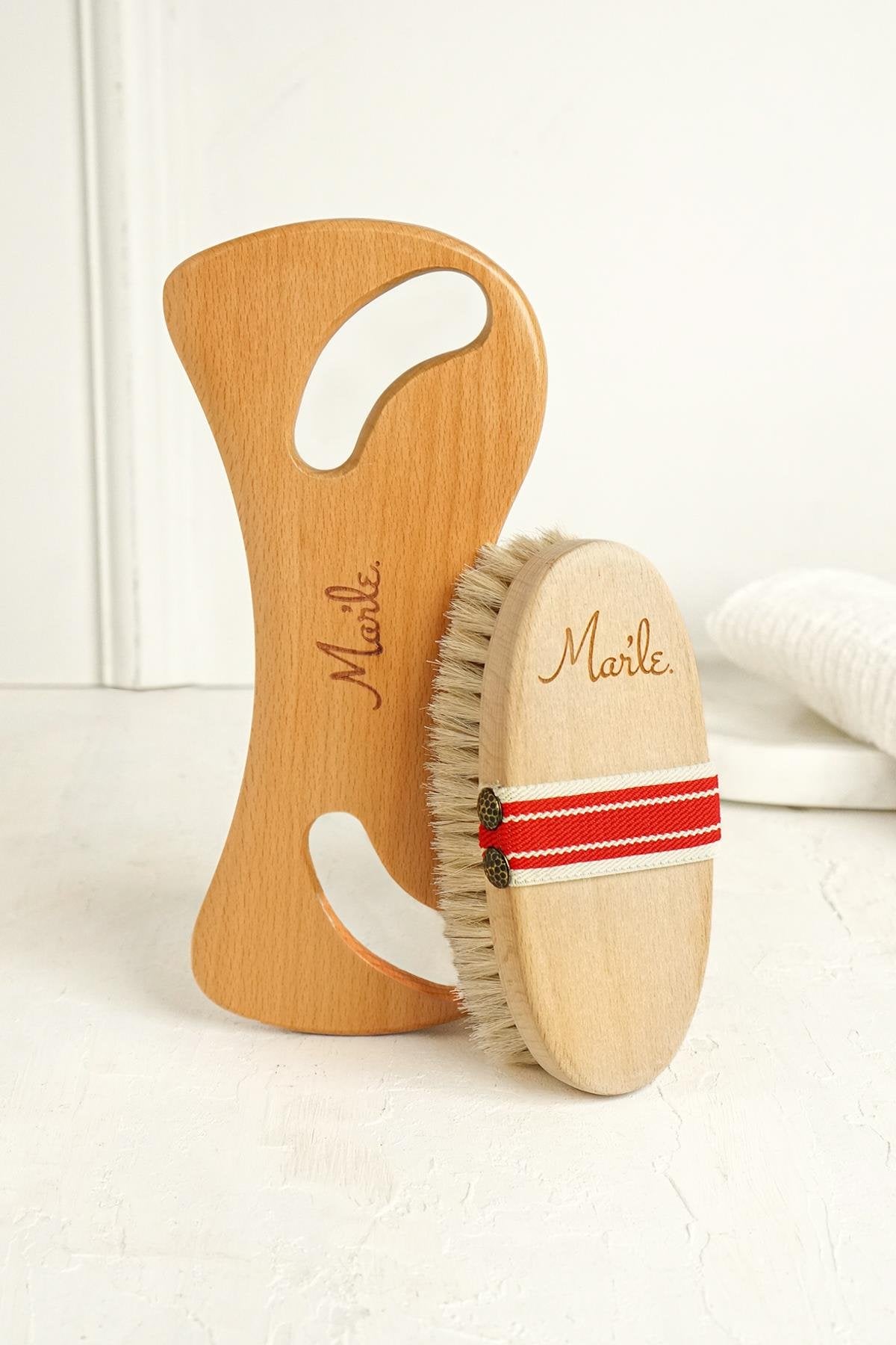 Mar’le %100 Doğal At Kılı Fırçası ve Mar’le Ahşap Selülit Masaj Aleti