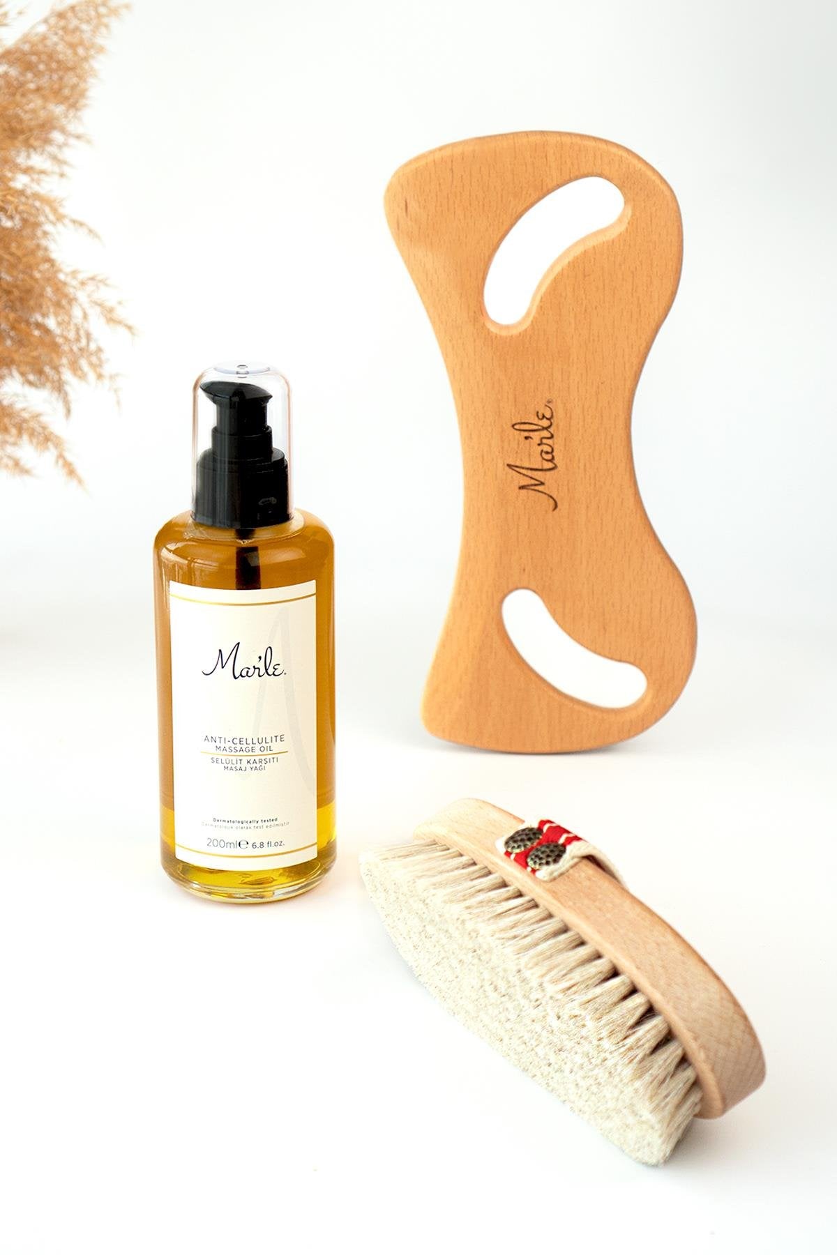 Mar’le Doğal At Kılı Fırçası + Selülit Karşıtı Masaj Yağı 200 ML + Ahşap Masaj Aleti 3’lü Selülit Bakım Seti