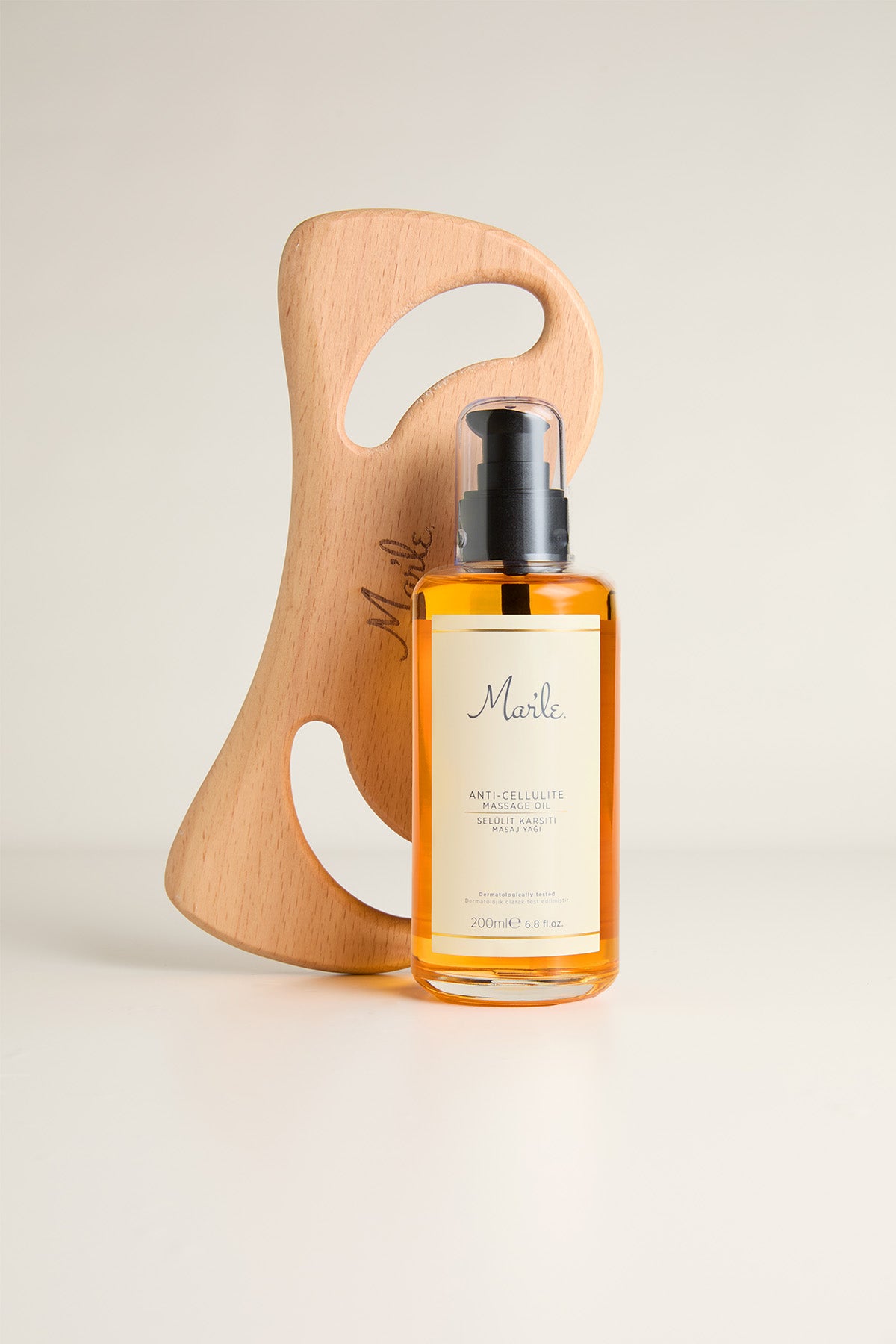 Mar'le Selülit Karşıtı Masaj Yağı 200 ML + Selülit Giderici Ahşap Masaj Aleti 2'li Selülit Bakım Seti