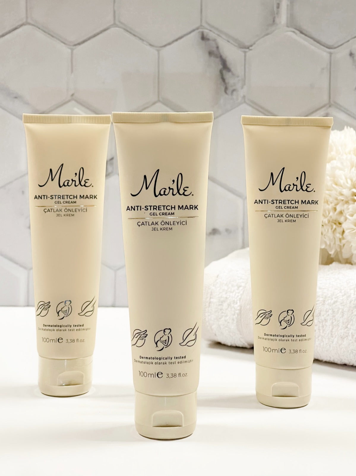 Mar’le Çatlak Önleyici Jel Krem, karın, basen, göğüs, el ve ayak bölgelerinde çatlak oluşumuna karşı cildi destekleyen, derinlemesine nem sağlayan ve elastikiyeti artıran özel bir formüle sahiptir. Hafif ve hızlı emilen jel-krem yapısı, cilde yapışkan bir his bırakmadan gün boyu nemli ve esnek kalmasına yardımcı olur. İçeriğindeki Kakao Yağı, Keten Tohumu Yağı, Kantaron Yağı, Jojoba Yağı, Badem Yağı, Avokado Yağı, Macadamia Yağı, Zeytinyağı ve E Vitamini, cilt bariyerini güçlendirerek kuruluğu giderir, cildi yoğun şekilde besler ve çatlak görünümünü azaltmaya destek olur. Cilt elastikiyetini koruyarak hamilelik, kilo değişimi veya yoğun fiziksel aktiviteler sırasında oluşabilecek çatlakların önlenmesine yardımcı olur.