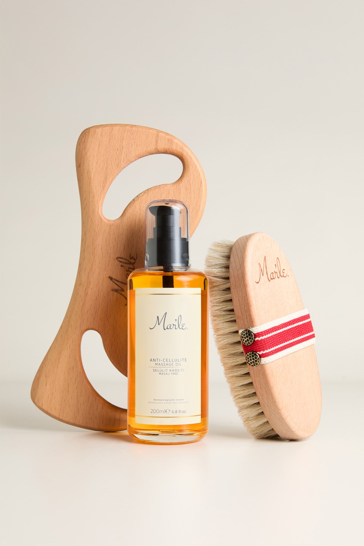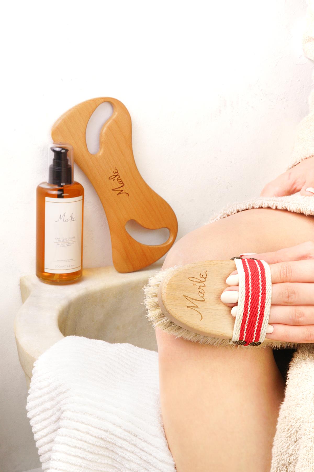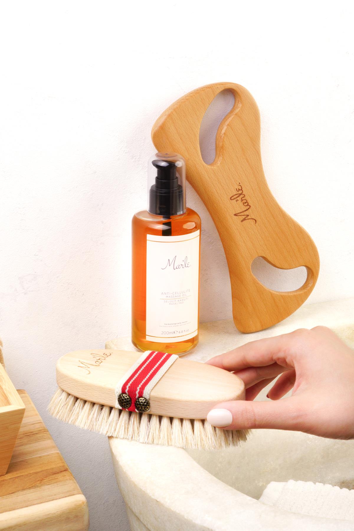 Mar’le Doğal At Kılı Fırçası + Selülit Karşıtı Masaj Yağı 200 ML + Ahşap Masaj Aleti 3’lü Selülit Bakım Seti