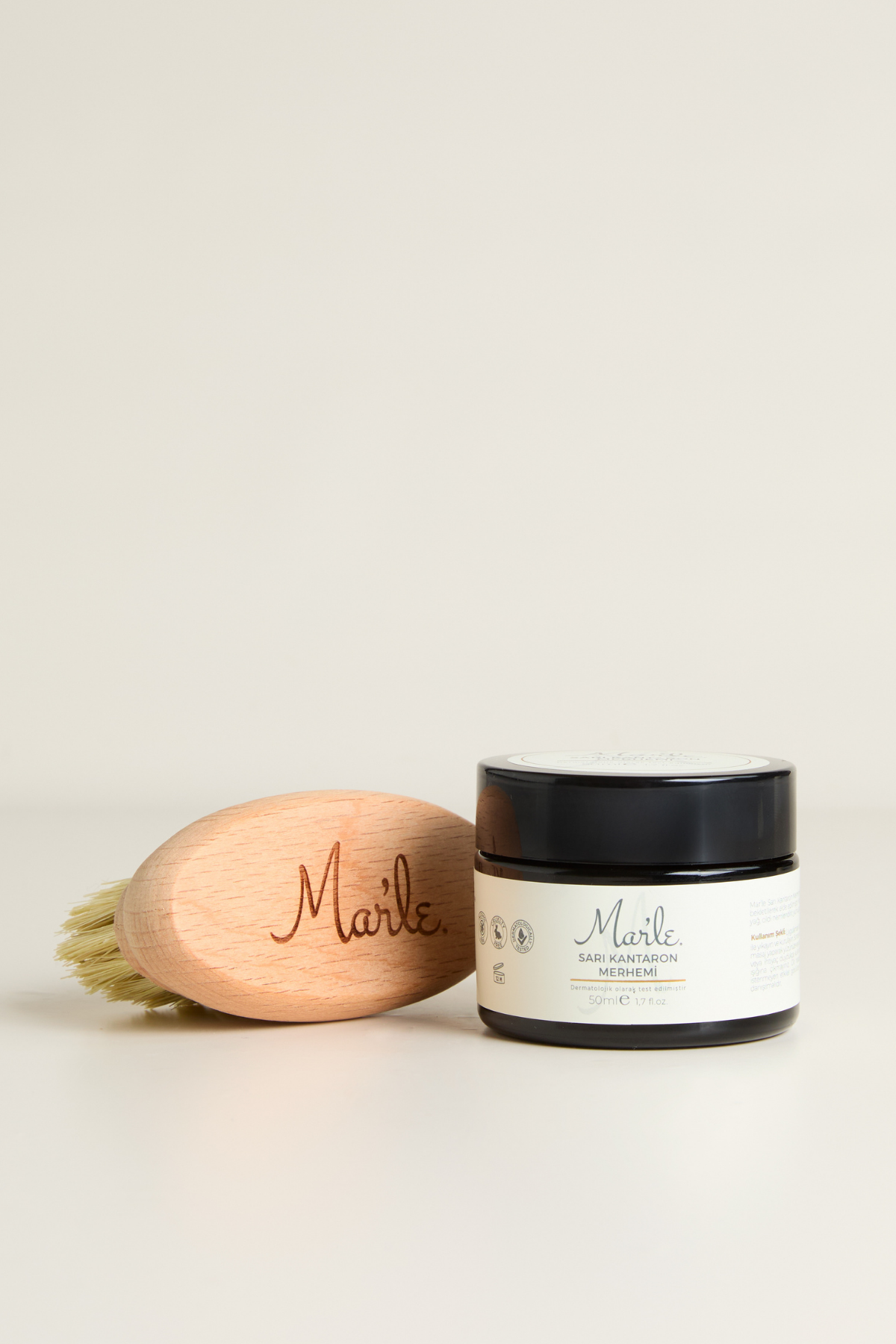 %100 doğal tampiko otundan üretilen Vegan Tırnak Bakım Fırçası, tırnak çevresindeki kan dolaşımını destekleyerek tırnaklarınızı daha sağlıklı ve güçlü bir görünüme kavuşturur. Mar’le Sarı Kantaron Merhemi ise, soğuk sıkım zeytinyağında uzun süre bekletilmiş sarı kantaron çiçekleriyle hazırlanır. Cildi yatıştırır, onarır ve doğal bir yenilenme süreci başlatır. Günlük kullanımda ciltte gözle görülür bir yenilenme, tırnaklarda ise canlı ve güçlü bir görünüm sağlar; doğallığın verdiği güvenle, bakım ritüelinizin vazgeçilmezi olur.